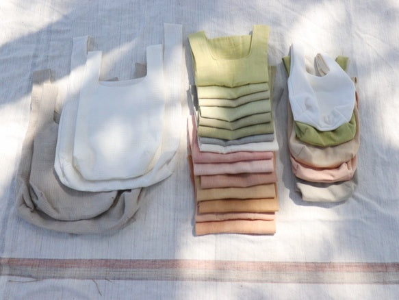 縫製は、余計な裁断はせずに一枚布で縫い合わせています。