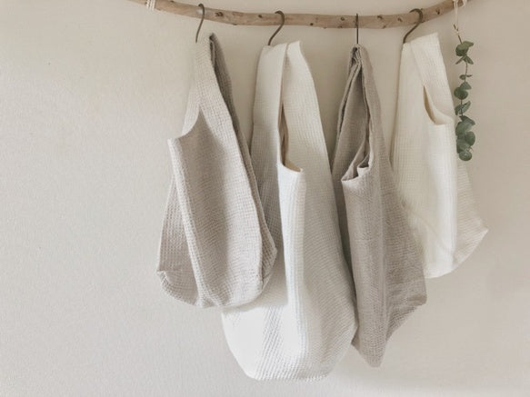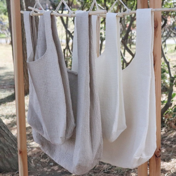 上質なワッフルリネン100%を贅沢に使った内ポケット付きのトートバッグです。